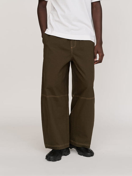 Bev Brown Contrast Stitch Barrel Trousers