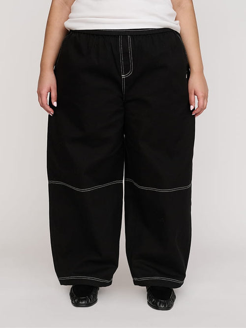 BEV BLACK CONTRAST STITCH BARREL TROUSERS