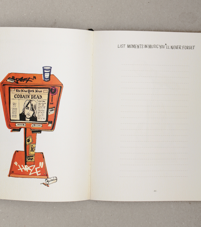 Desinged by Lisa and Michael Nola, each list is accompanied by a fitting illustration featuring favourites like Kurt Cobain, Bob Dylon and John Lennon to name a few.