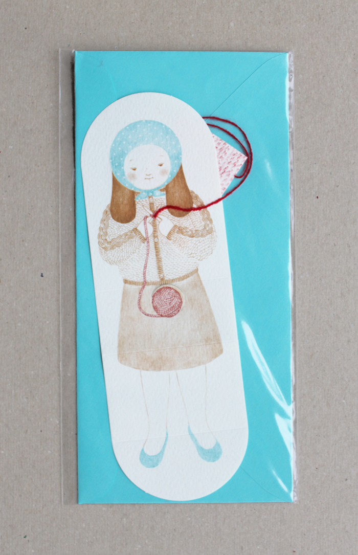 Here is the perfect card to send to any knitting lovers! This little lady folds into the sitting position so you can prop her anywhere you wish.