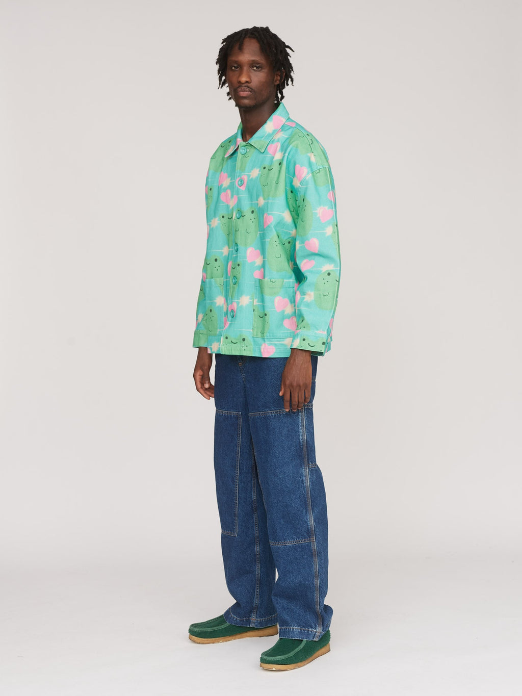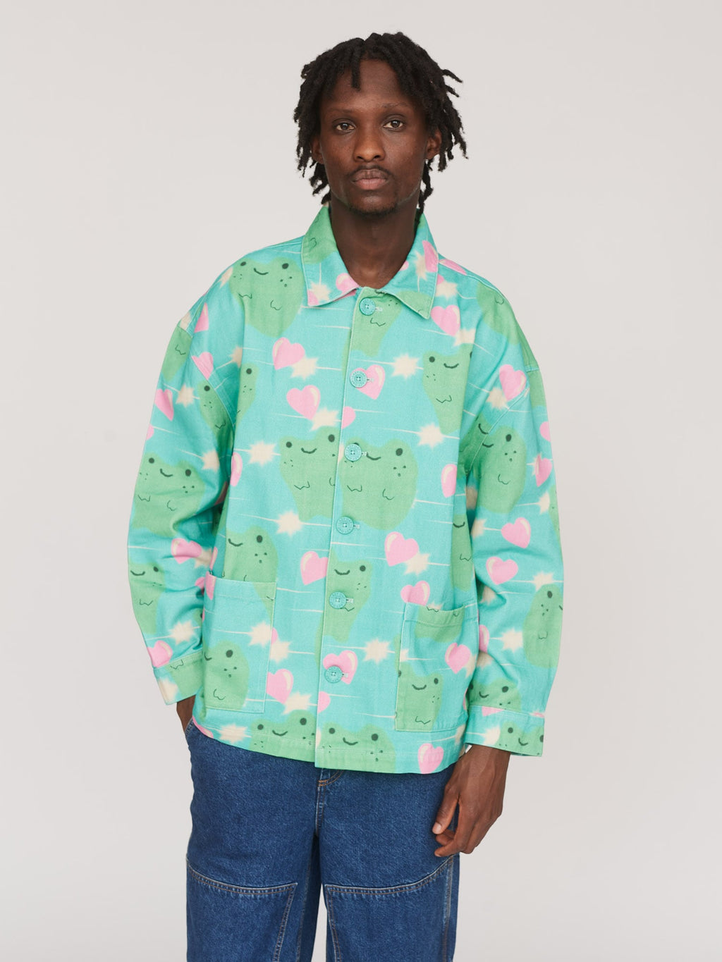 If spring was an item of clothing, it would be this jacket. Our classic chore jacket is collared and has a relaxed, boxy shape with a dropped shoulder along with functional buttoned cuffs. There are two front patch pockets which are the perfect size for an aquatic pal to chill in. It has a pond-approved all over print, created by our designers in our North London studio. Made from 100% cotton, it has a lightweight denim feel making it ideal to layer, or wear alone. Complete your pondside look with a white tee and the Across the Pond Mini Skirt.