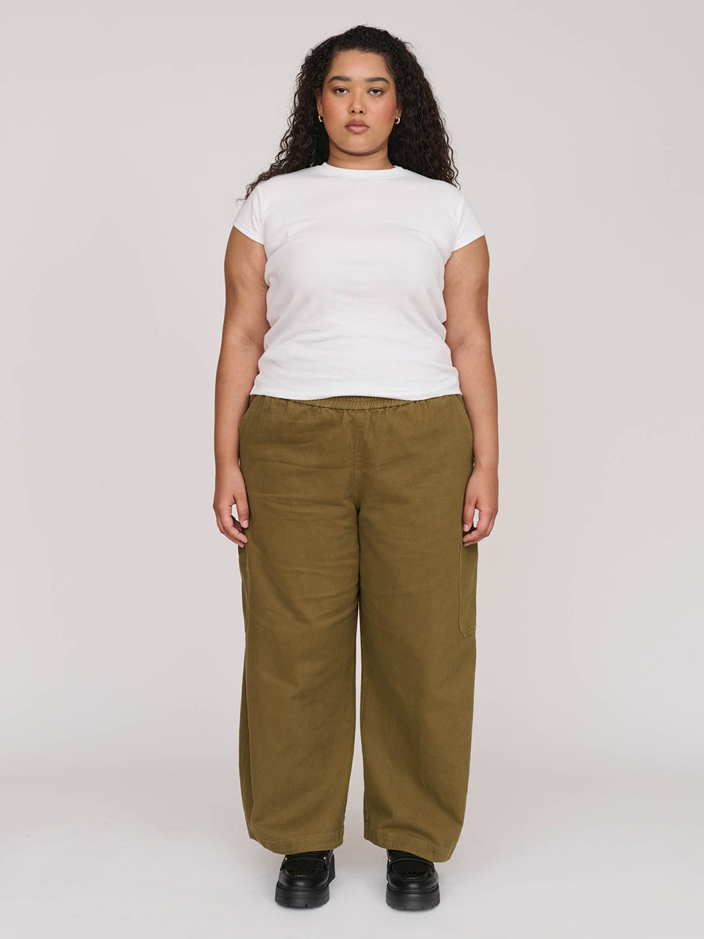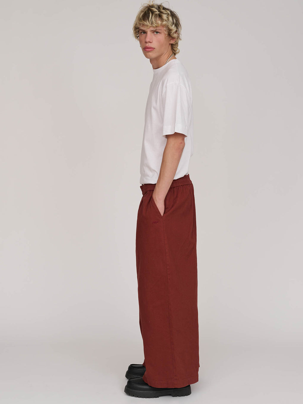 Bev is back in khaki; one of our new trouser styles, Bev’s got a barrel leg and an elasticated waistband with an internal drawcord, plus there’s pockets at the hips, leg and back. With a 71cm inseam, they feature both a tonal embroidered branding as well as a woven patch label and this iteration is made from a heavyweight cotton. Do you wanna know the best part about Bev? She’s also available in pink too.