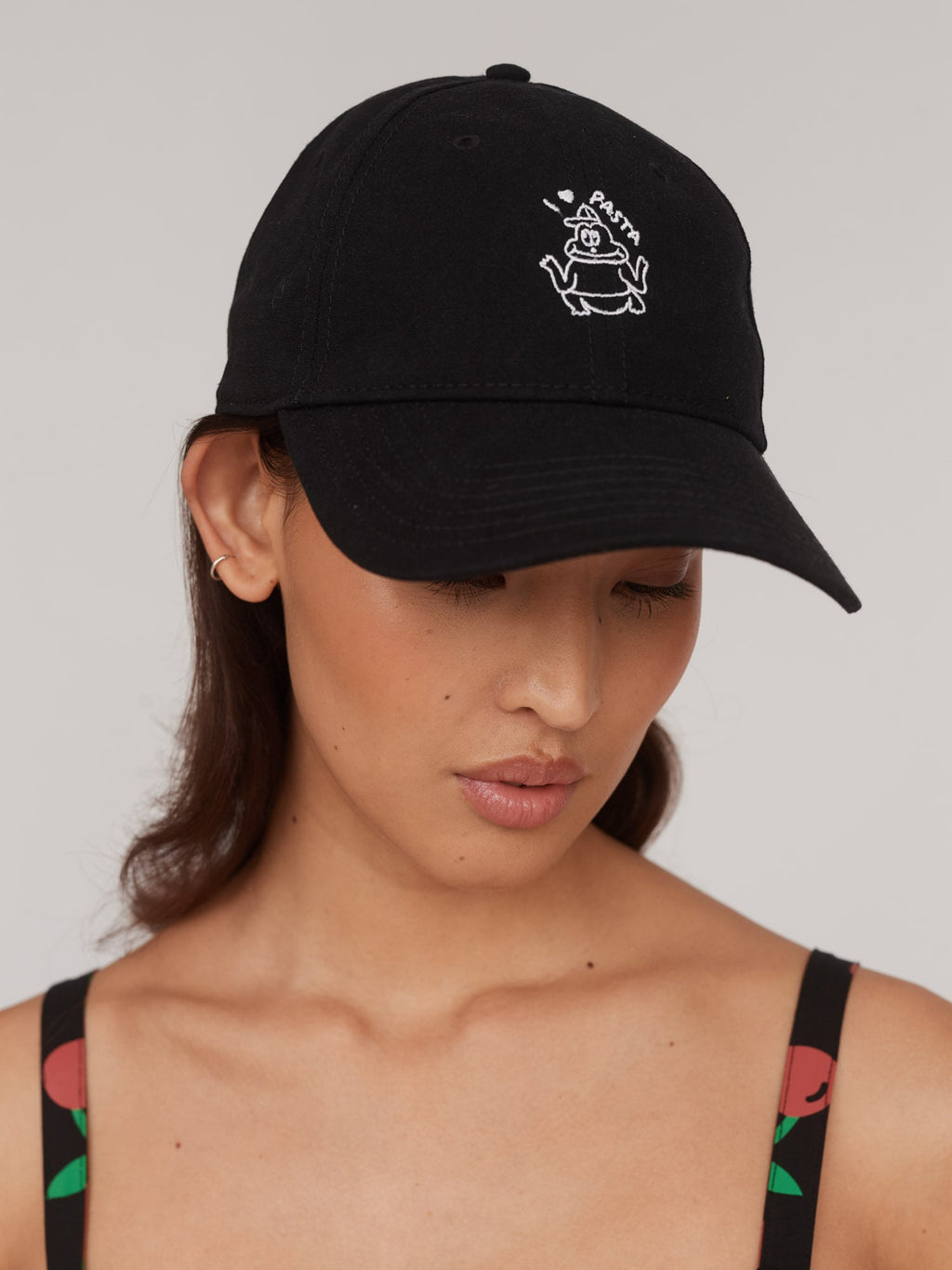 For blocking out the sun or unwanted social interactions, a cap is a need, not a must have for your wardrobe. In a classic cap shape it has a contrasting ‘I <3 Pasta’ text and frog illustration embroidered onto the front. Whether you have a head the size of a watermelon or a pea, no need to worry, as there’s an adjuster at the back.
