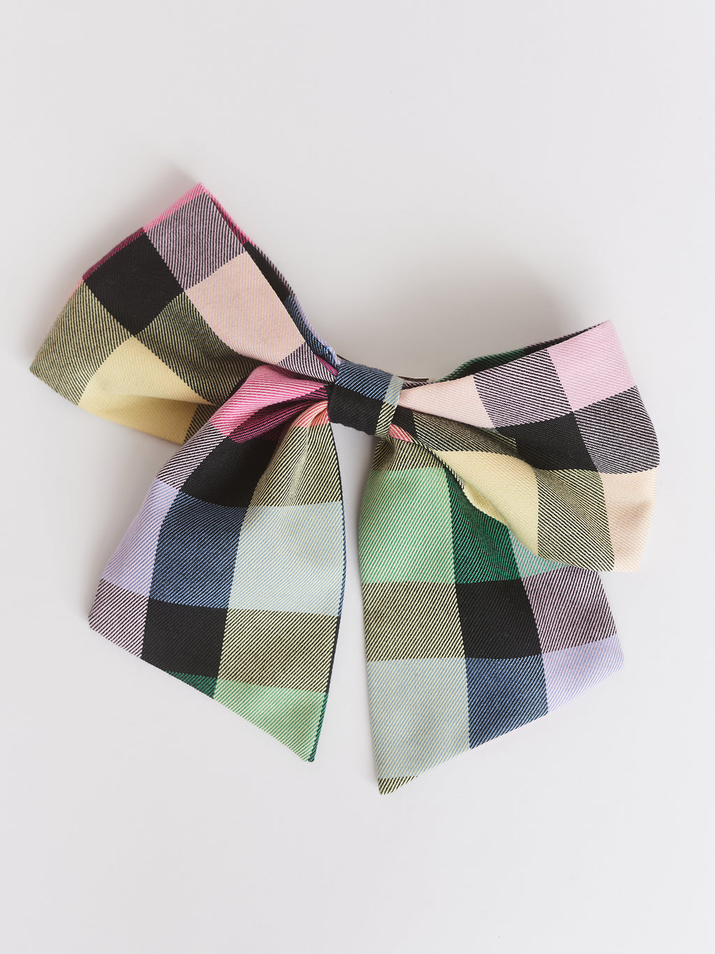 This hair bow will be the cherry on top of all your looks. In a multi-colour brushed check, it has a metal clip attachment so it can be added to your ponytail or to clip your hair out the way. Style alone or pair with one of our co-ordinating Checkmate styles.