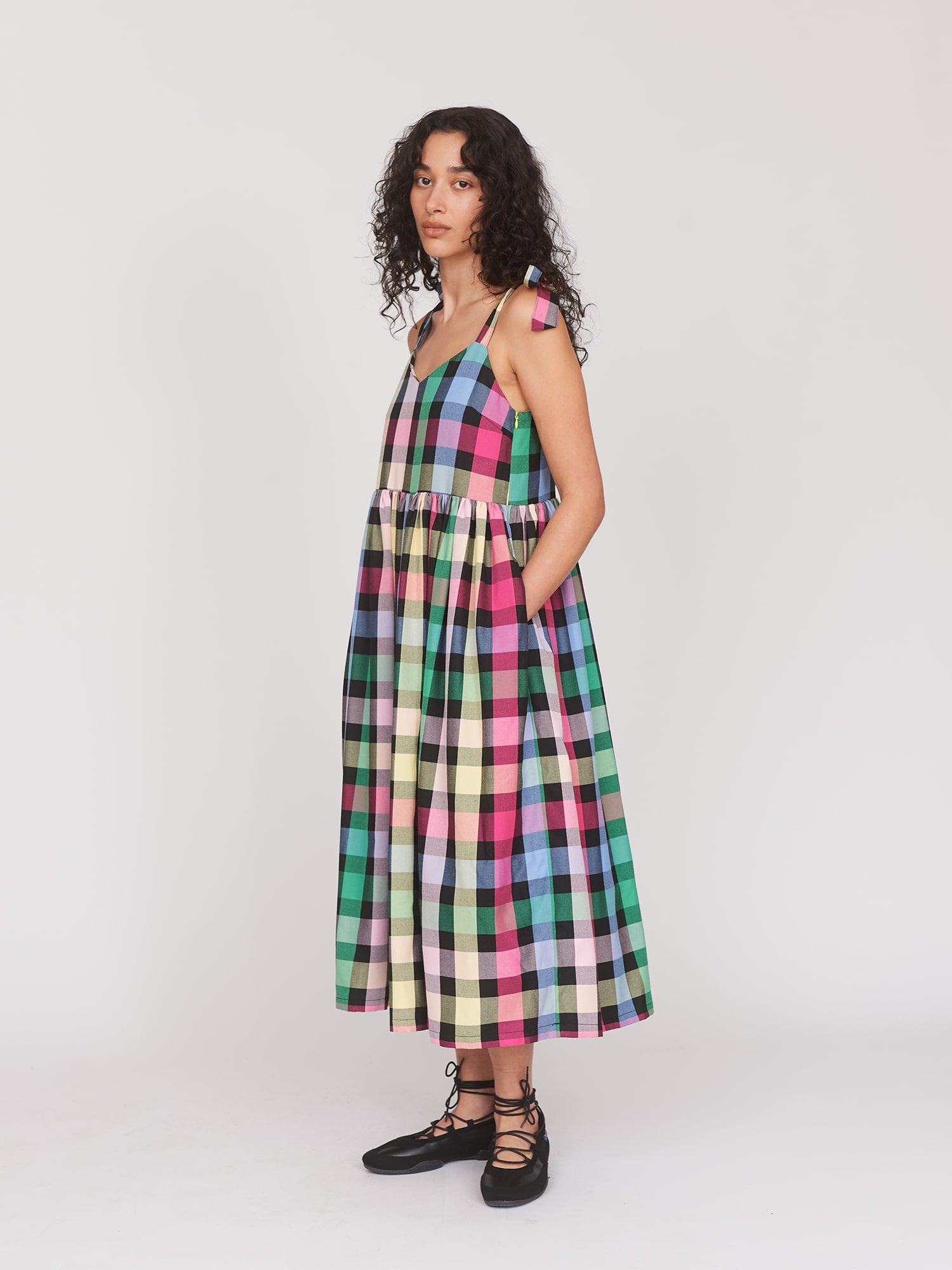 In a brushed, multicolour check fabric, this fitted short-sleeve shirt is collarless with a curved button placket and asymmetrical hem. It has puff sleeves with elasticated cuffs which are tight enough to keep volume, without suffocating your arm. Co-ordinate with our Checkmate Trousers, Bag and Bow for a look that’ll be on everyone’s mind.