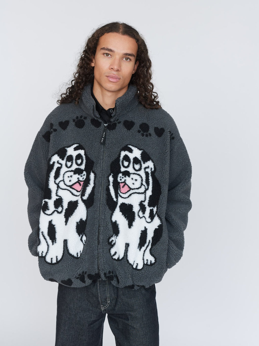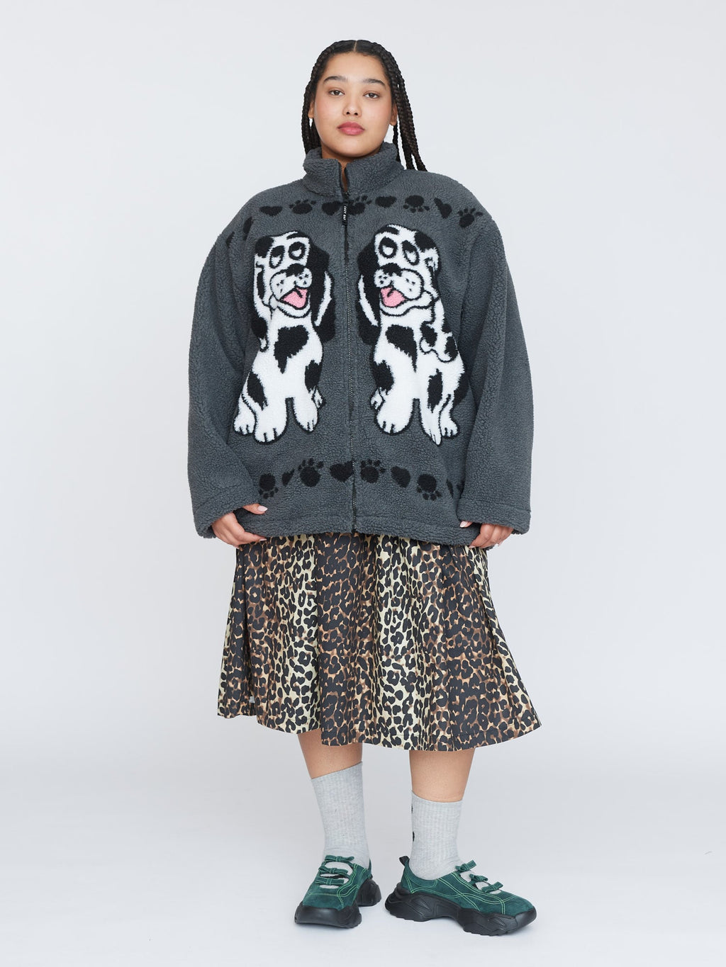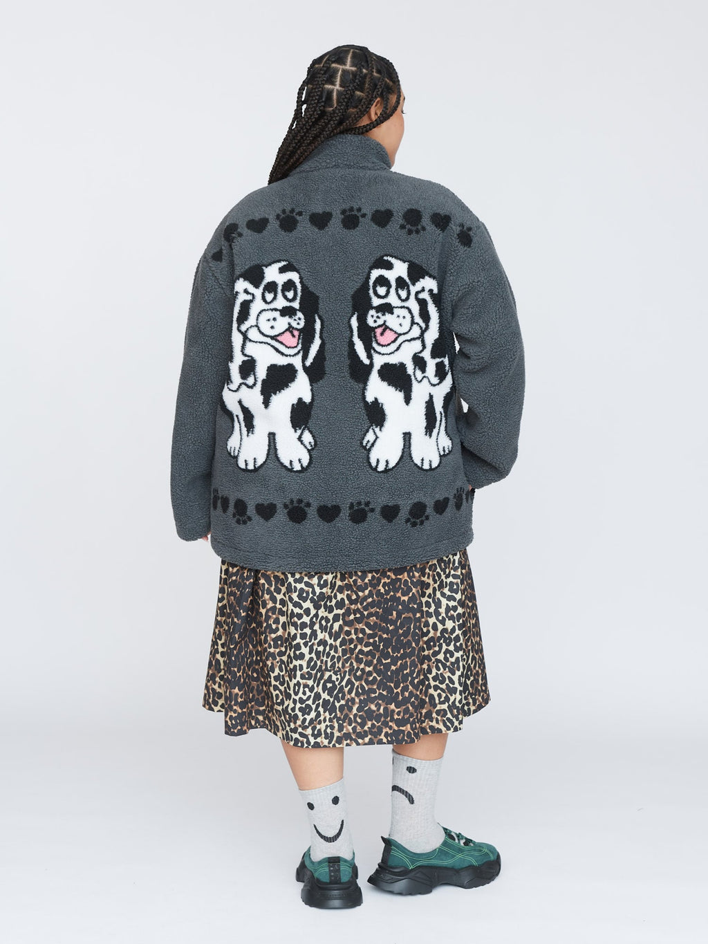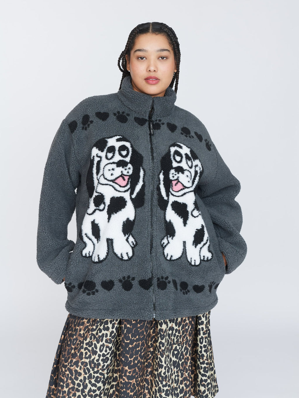 It’s us, we let the dogs out! This zip front fleece has a short, funnel neck and an elasticated drawcord hem with a pig nose toggle. In a deep grey, this jacket has a front and back Dalmatian fleece design, and is fully lined with micro fleece. With side seam pockets, this fleece will make you feel like the belle of the kennel.