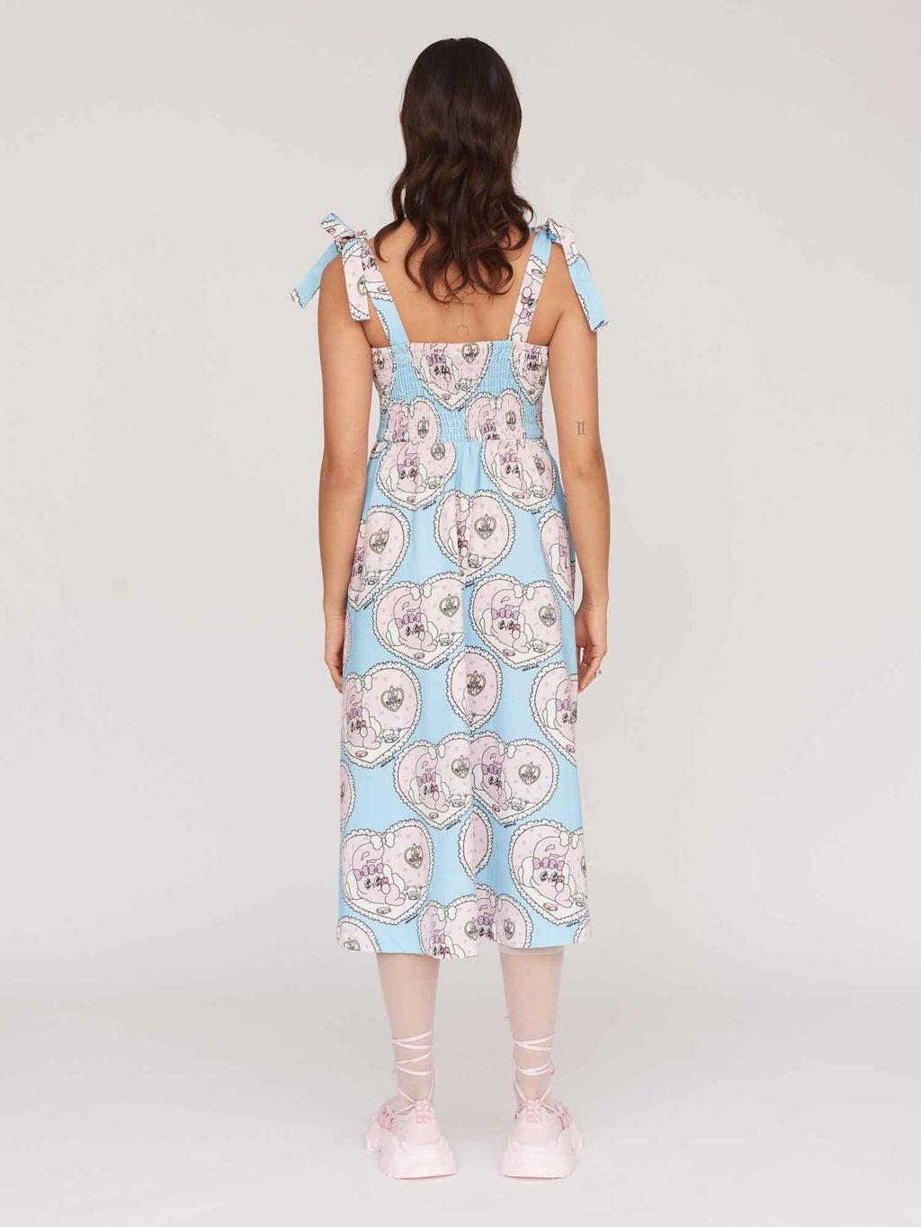 This midi dress is a staple summer style that’s perfect for everyday, or gettin’ dressed up for a special occasion. In a custom all over LO X Esther Bunny print, this lightweight dress is made from 100% cotton. Along with the comfortable material, it has an elasticated shirred bodice and fully adjustable tie shoulder straps plus the midi length skirt has side seam pockets. Style with your Pink Ballet Sneakers and some white frilly socks and you’ll have Esther going green with envy.
