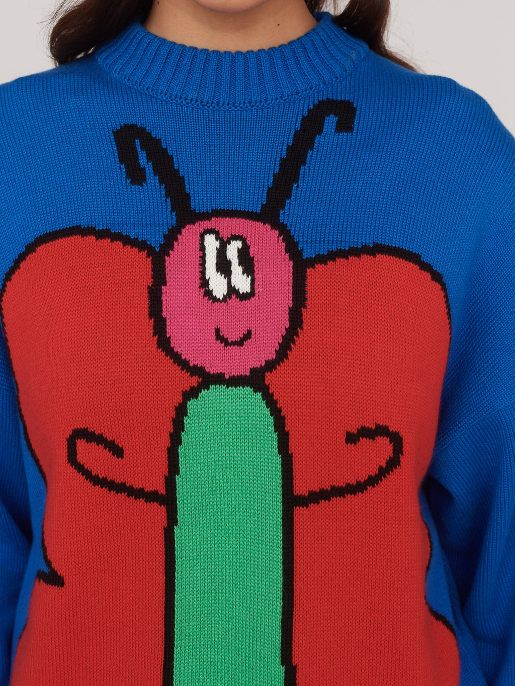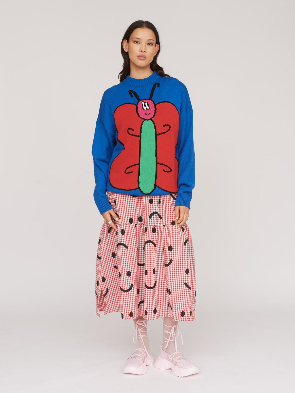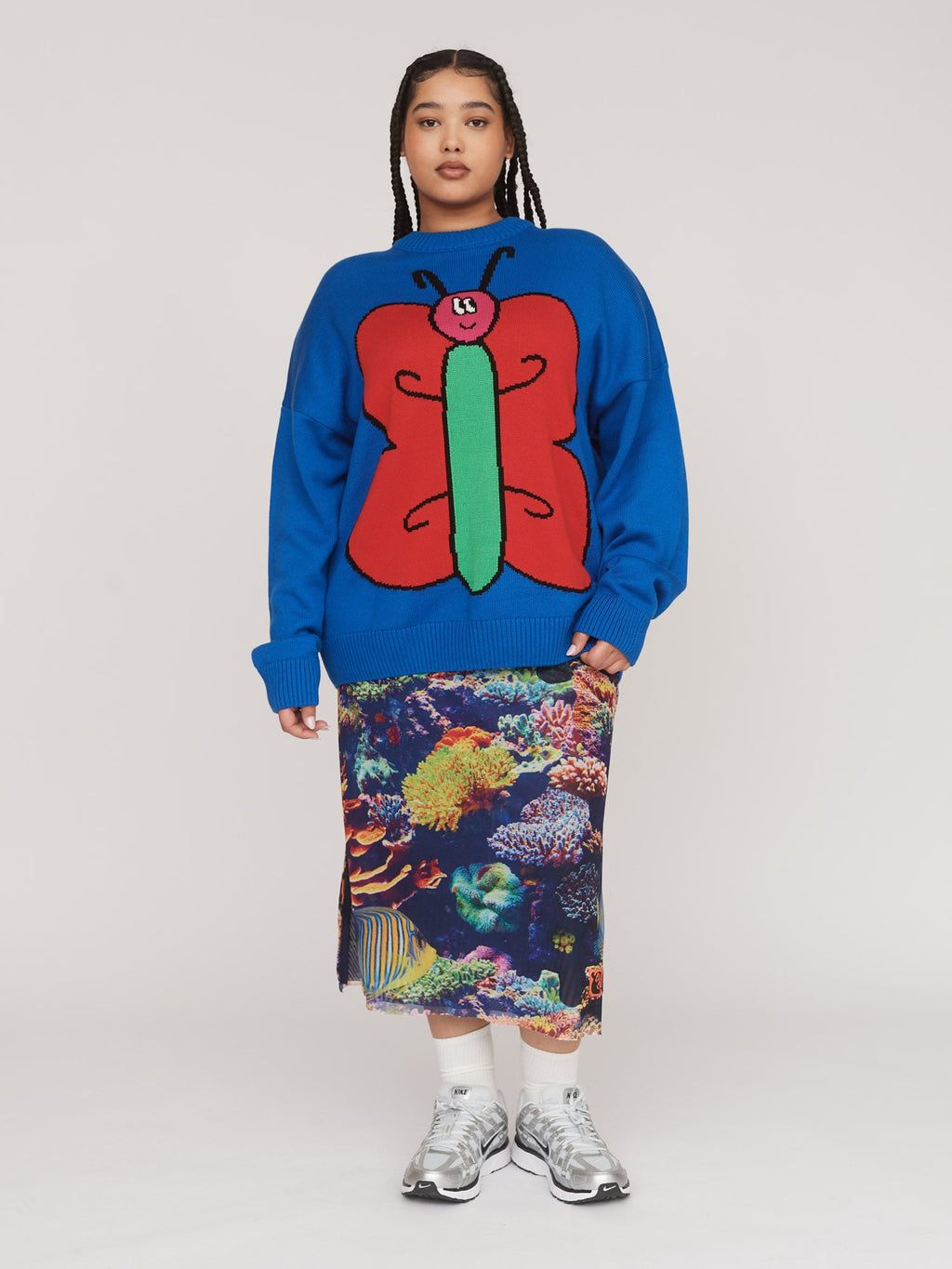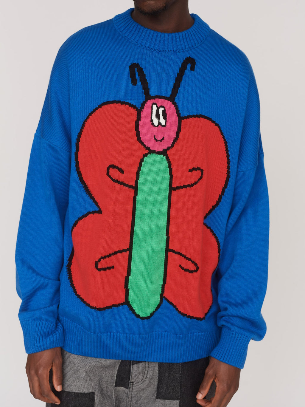 It’s this butterfly’s world, we’re all just living in it. This long-sleeve knit jumper is the ideal piece to take you from spring to summer. It’s lightweight, so perfect for throwing on under your coat or as an extra layer on a warm night. In a cobalt blue, it has an intarsia butterfly design on the front, with a ribbed neck, hem and cuffs. This statement jumper will be the perfect addition to your wardrobe for all the months to come.