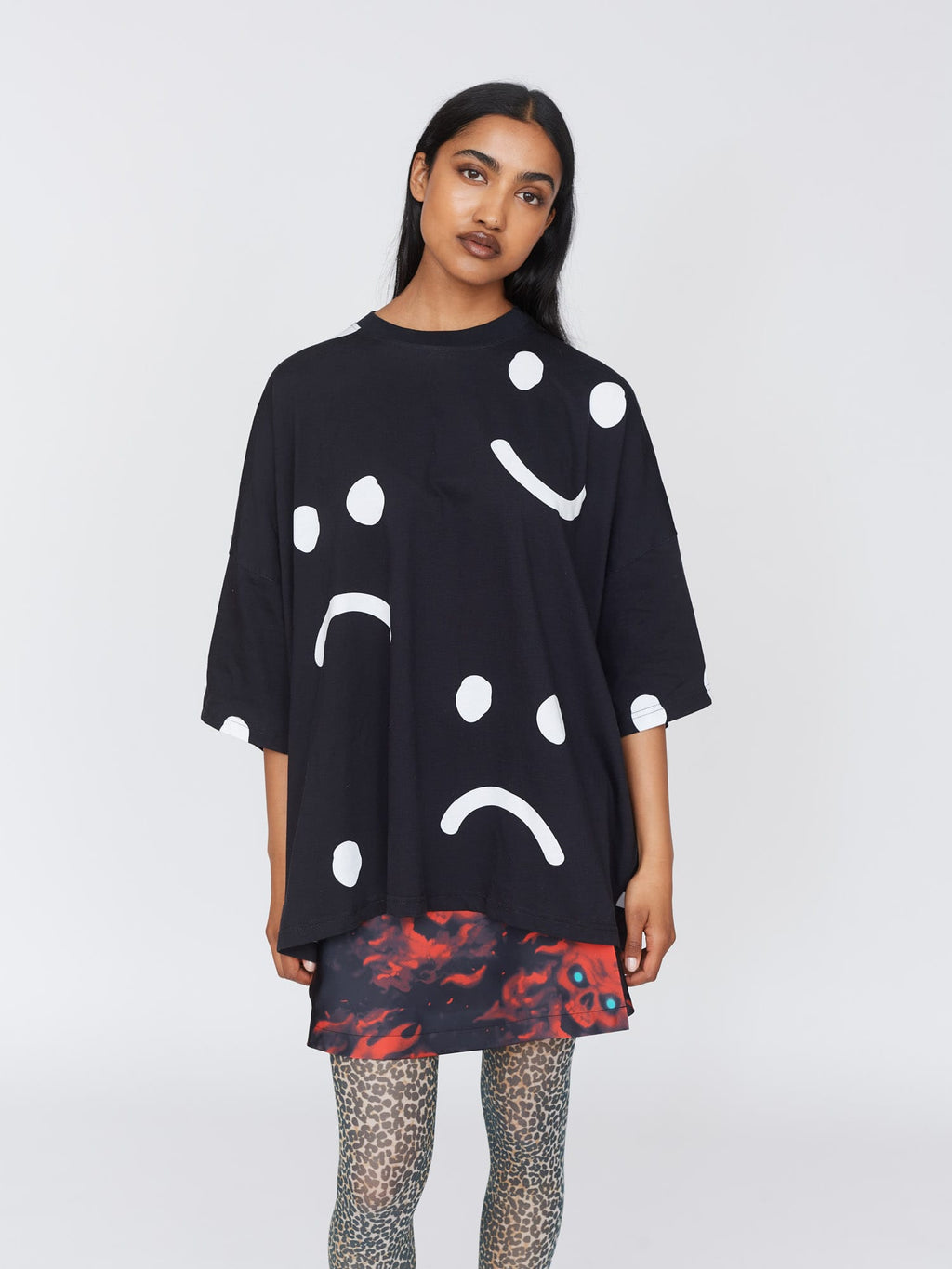 You can’t go wrong with an oversized tee, especially when it’s in our bestselling mixed emotions print. Made from 100% cotton, our one-size-fits-all tee is going to be the comfort food equivalent for your wardrobe. Pair it up with your Happy Sad Shirred Maxi Skirt for your match made in comfort heaven.