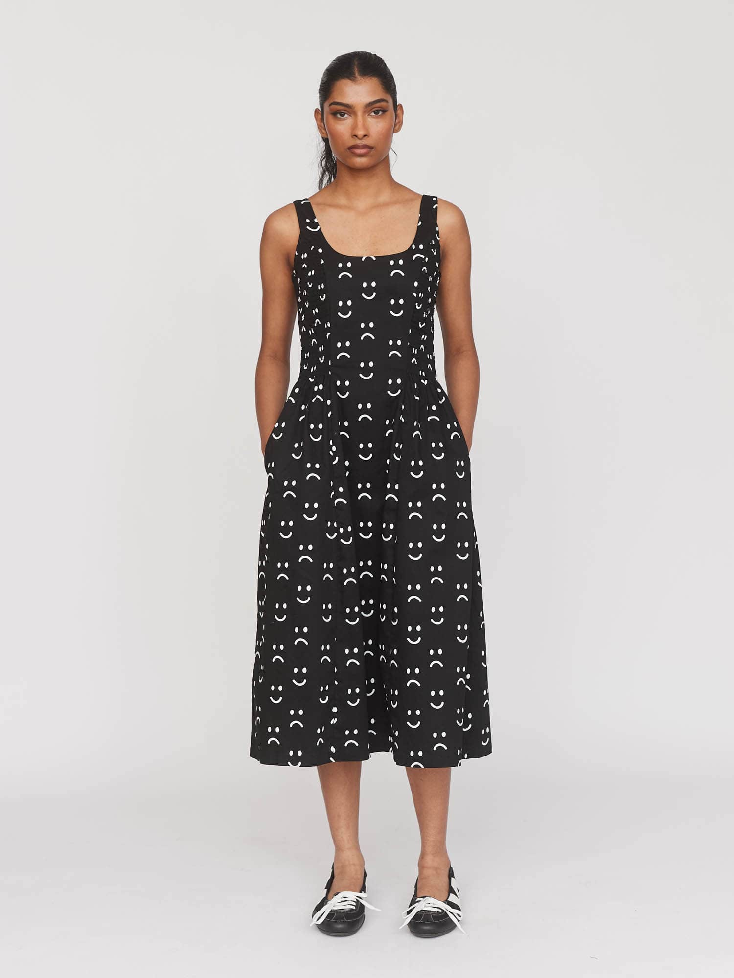 You guys went bloody bat-shit crazy for our Happy Sad Embroidered Shirt so you know what we thought - let’s make it a dress. Made from 100% cotton, this short-sleeve, shirt dress has an oversized collar with lace ruffle trim which features Happy Sad embroidery giving it an embossed look. On the front panels either side of the buttons is the same motif and detailing as the collar. The full, mini length skirt is pleated and fully lined so you don’t have to worry about the sun, or wind, doing you dirty. Style with our classic Happy Sad Socks and Slimbos for the perfect day to night summer look.