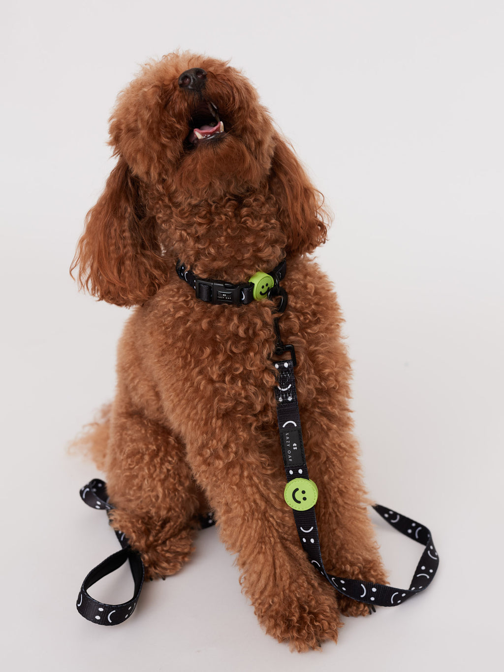 Featuring our classic hand drawn Happy Sad print, this collar is the level of luxury your fur friend deserves. It’s made from a quick drying fabric, ideal for those with pups who moonlight as seals, and it has a soft and flexible neoprene lining, which makes it durable and long lasting. It’s fully adjustable, machine washable, and features a sturdy D ring for lead attachments. Plus, it looks so good that your dog will outshine all the other pets in the park especially if they’re also wearing the matching harness and lead…