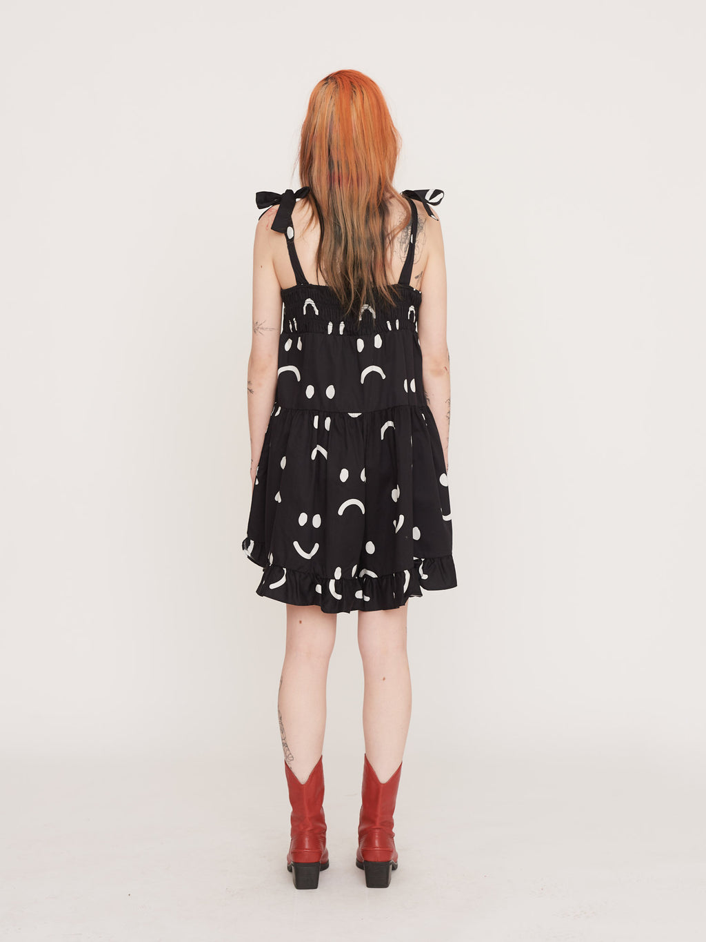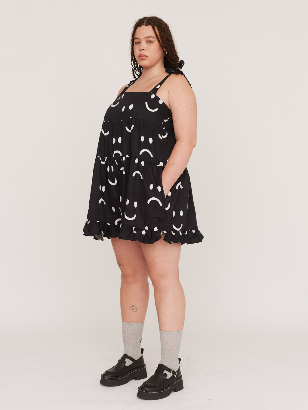 This is going to be a summer essential, ready to be thrown on for last minute pub plans. In our signature happy sad print, this is a relaxed and loose fit romper, with a tiered body and a ruffled hem, plus adjustable tie shoulders, which means you can change the fit to what’s comfortable for you.Need help with your order? CONTACT US