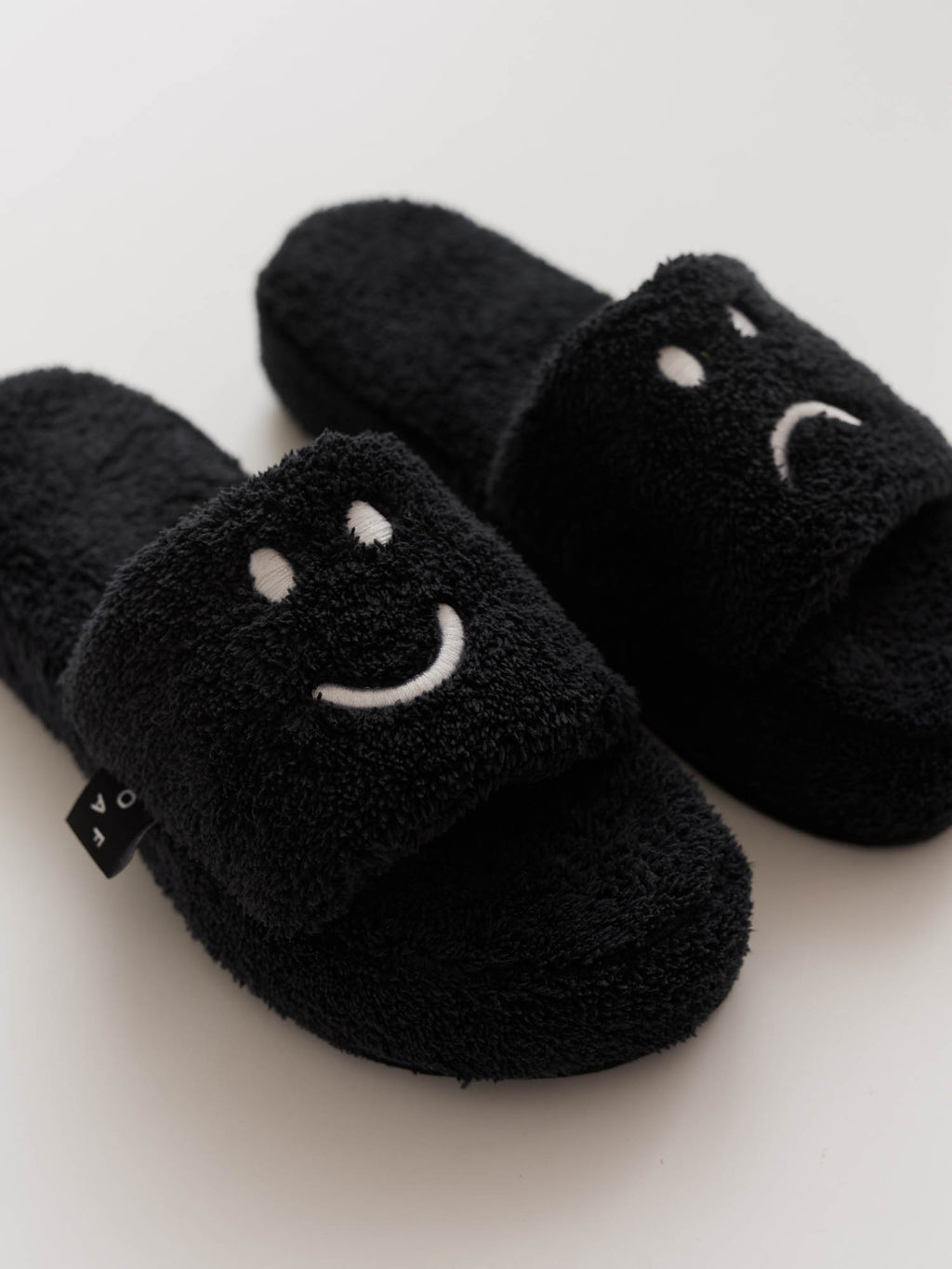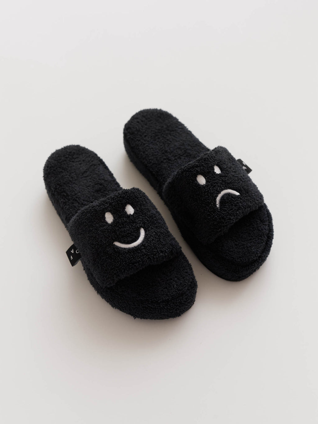 Socks and slides are an essential combo for when you’re pottering around the house in your PJs, and these are our alternative to those awful plastic ones everyone wears. These are super soft and fluffy, covered in 100% cotton towelling and embroidered with our signature Happy Sad faces on the upper of both. They’ve got a nice chunky sole, too.