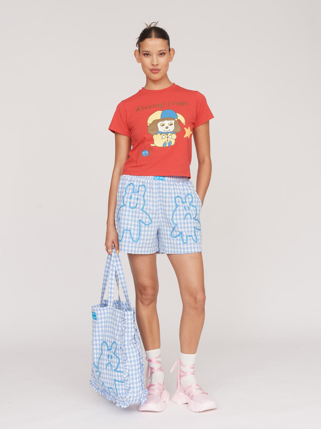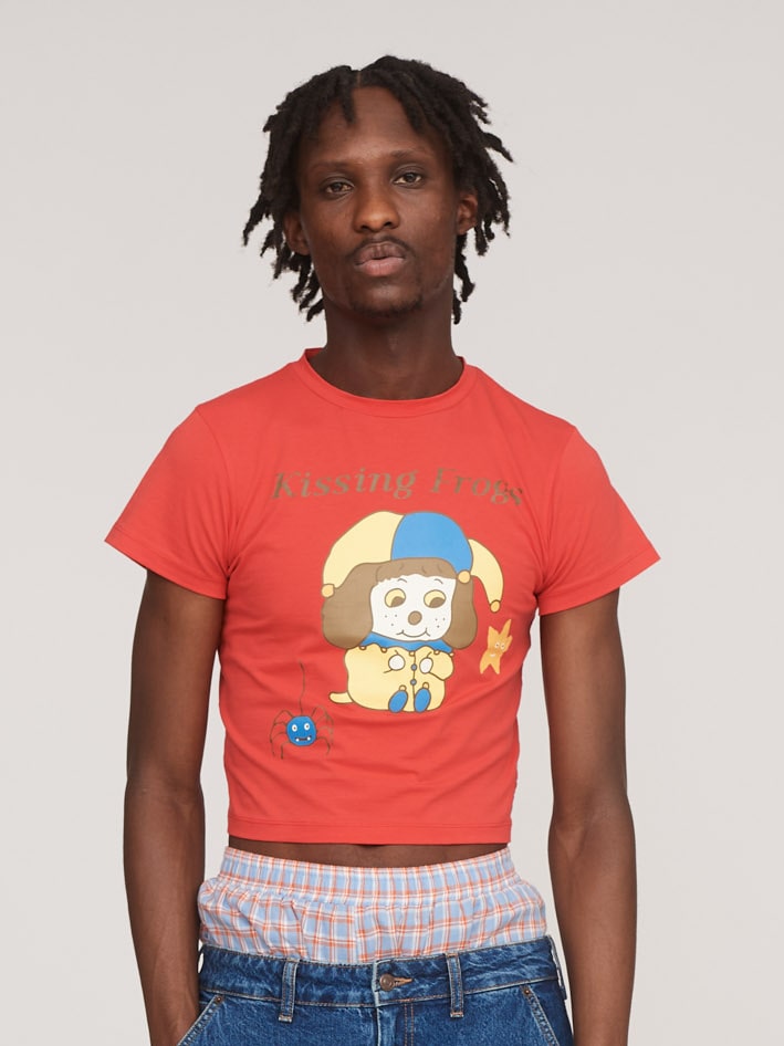 Our fitted tee shape is a wardrobe staple, and this enchanted rendition is going to be a solid part of your summer tee rotation. In red, it has a front graphic designed by illustrator Tom Jones, @tomjones92_, and a woven patch label at the hem in keeping with our Once Upon a Time collection. Pair with our Spotty Hat Mesh Skirt and Hug a Troll Knit Cardigan, you’ll be ready to wade through the swamps, and look cute whilst doing it.`