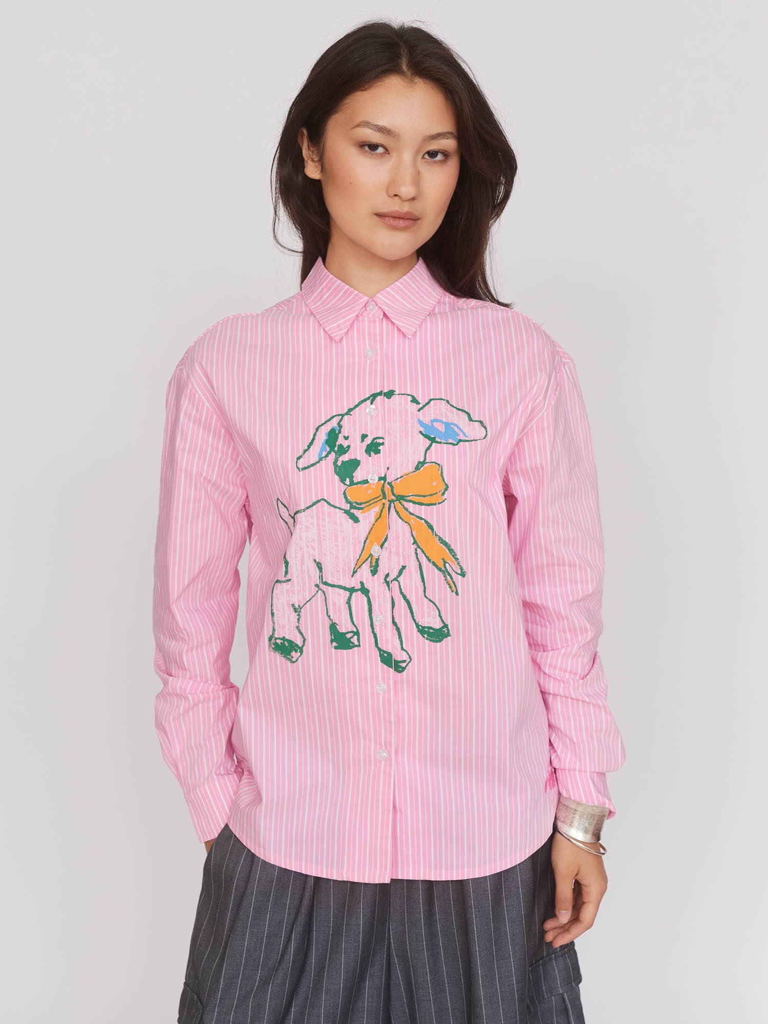 A new style at Oaf; these straight leg trousers have side slits at the hem and feature an attached, mini skirt overlay. In black, they’re fastenable by a concealed zip at the side seam and feature printed applique patches on the front by tattoo artist, Paula Grenouille. Coordinate with our Little Lamb Zip Up Top and you’ve got a versatile look you can reach for all year round.