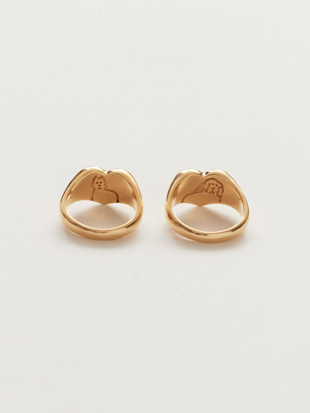 This My Dog ring is a part of our second collaboration with independent jewellery brand, Good Daze, and is available in both sterling silver and 18k gold vermeil. The signet style ring has the text ‘My Dog’ engraved into the flat front and an inside engraving of a line drawing style dog, designed by Lazy Oaf founder Gemma Shiel.