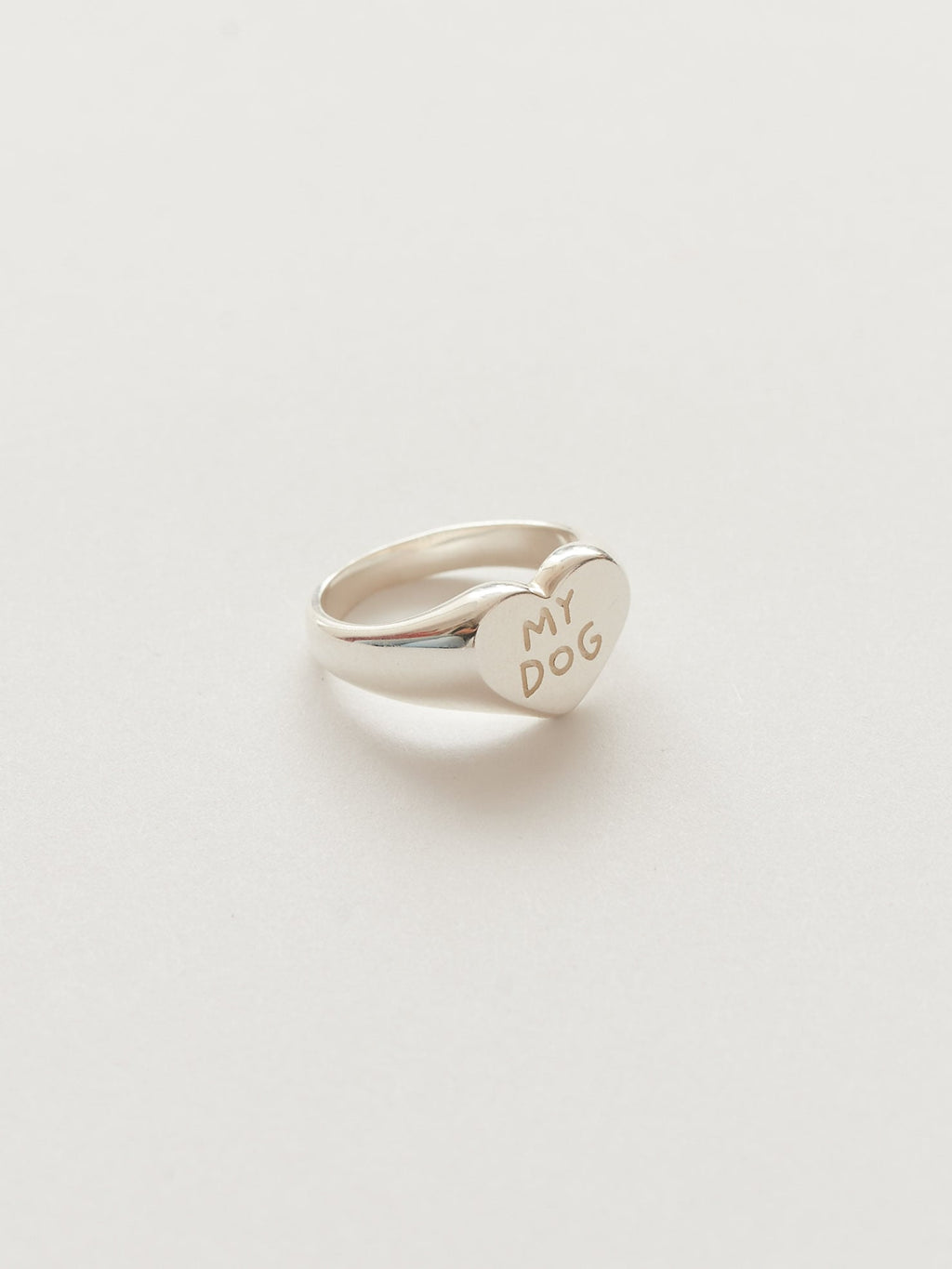 This My Dog ring is a part of our second collaboration with independent jewellery brand, Good Daze, and is available in both sterling silver and 18k gold vermeil. The signet style ring has the text ‘My Dog’ engraved into the flat front and an inside engraving of a line drawing style dog, designed by Lazy Oaf founder Gemma Shiel.