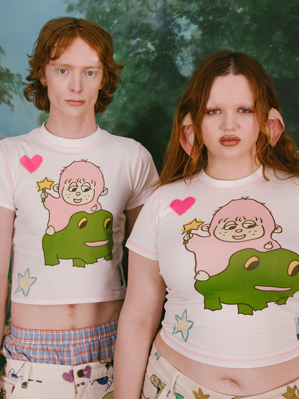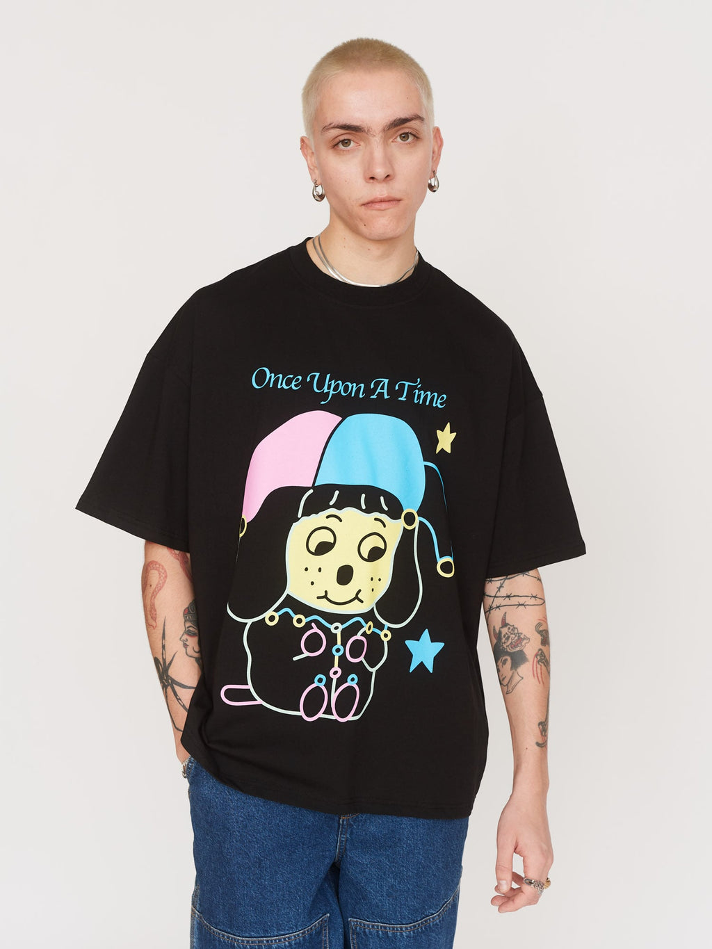 Our unisex tee shape is one of our most-loved silhouettes for a reason; in a relaxed fit with a dropped shoulder it’ll be your everyday go-to. In black, it has a front graphic with ‘Once Upon a Time’ text and a character illustrated by UK based artist Tom Jones, and a patch label at the hem. Wear alone, or layer our Fantasty Gang Bowling Shirt over the top.