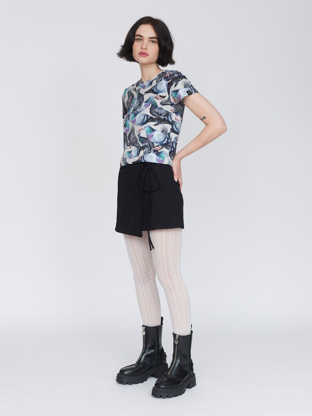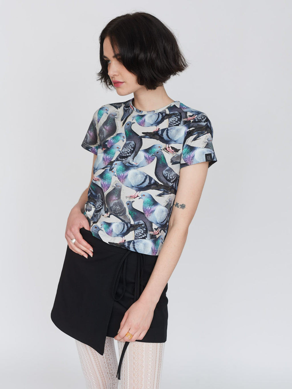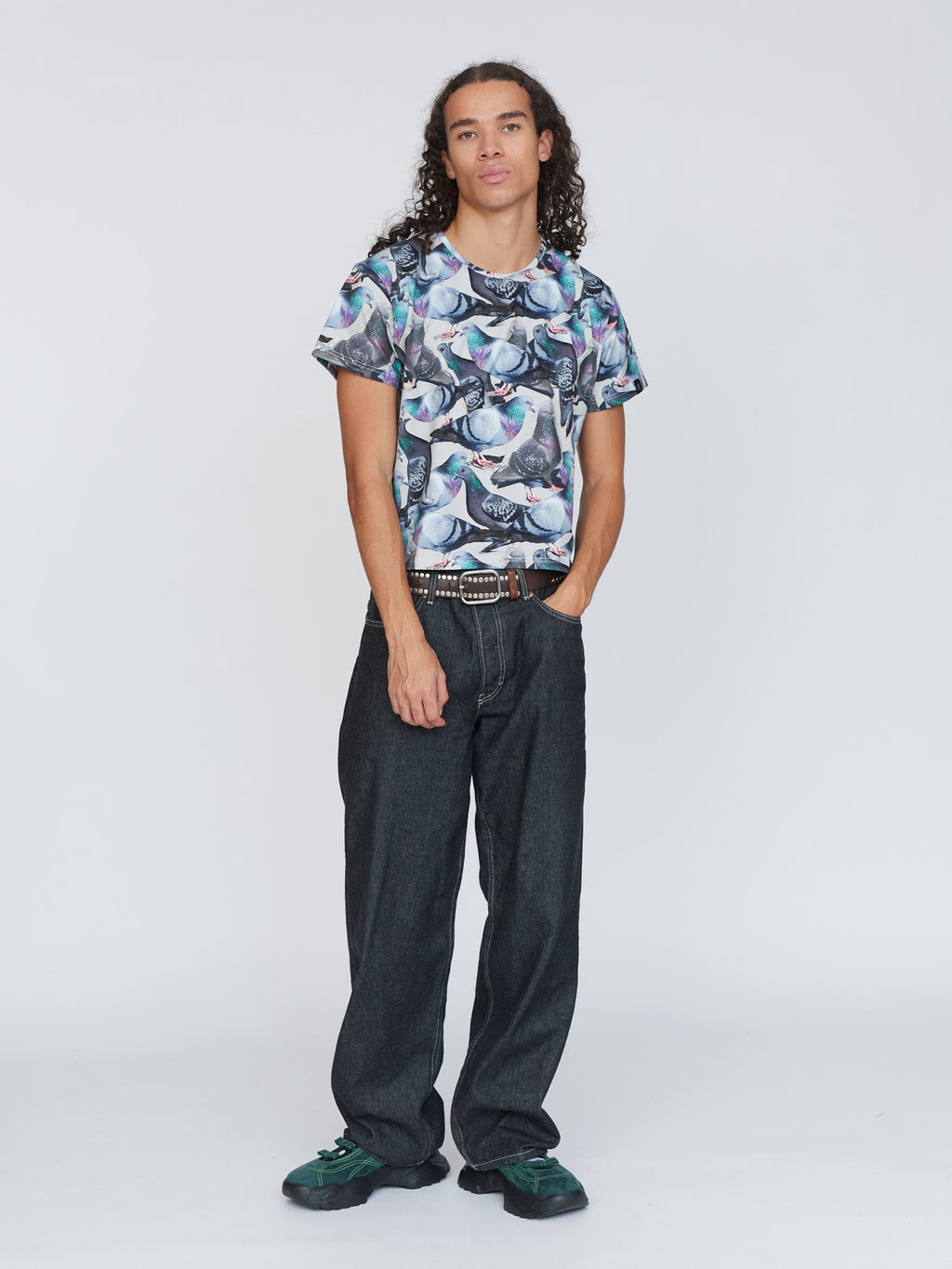 Our beloved fitted tee silhouette meets the underdog who deserves all the love. Made from a cotton elastane blend, this tee is true to size and has a slight cropped length. In an all over pigeon print, the greatest bird to have ever lived (after the Albatross from The Rescuers Down Under) it’ll look too coo-te with our Pigeons Are Pals Jeans.