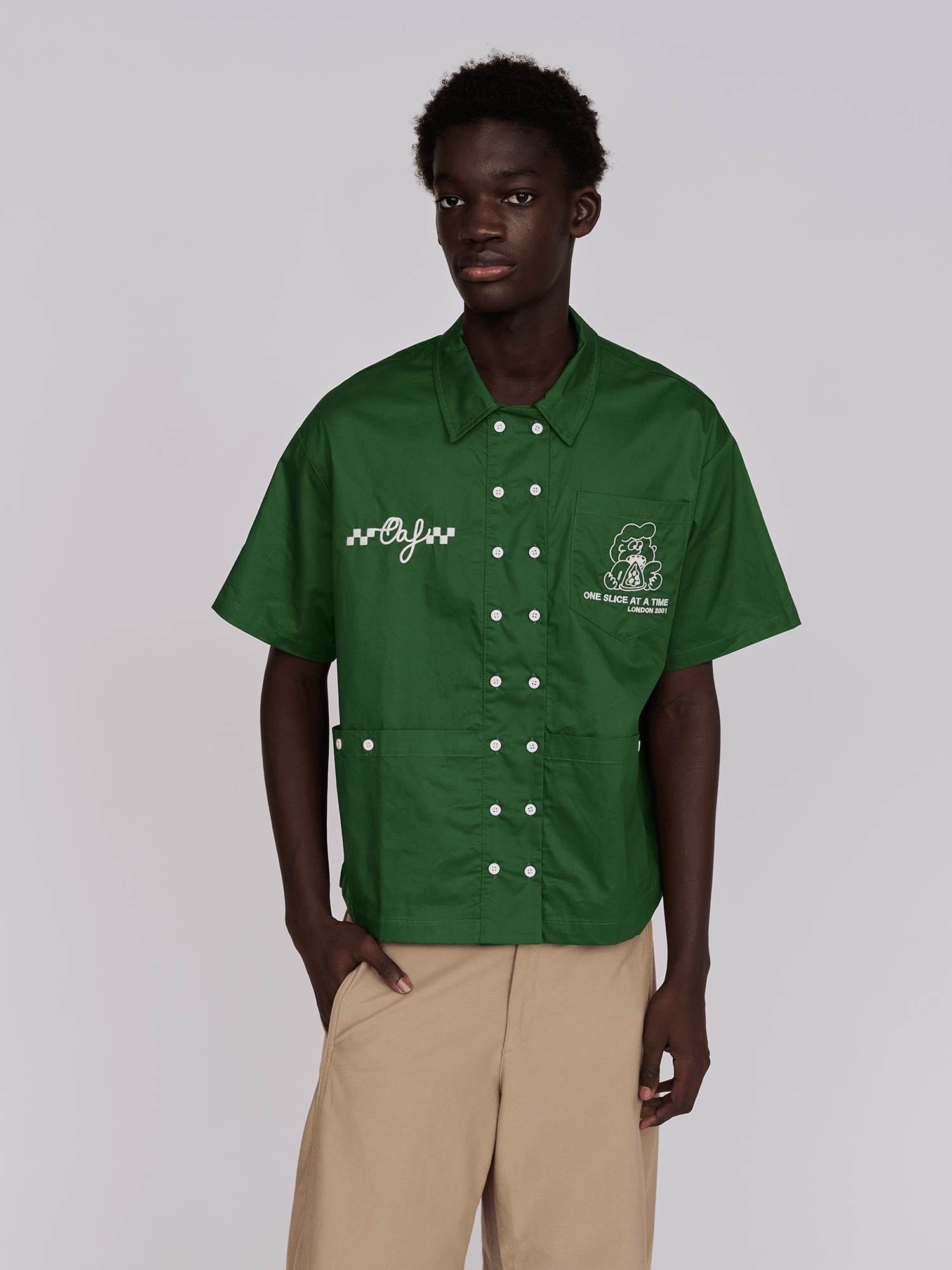 Our long sleeve tees are like a margarita pizza, timeless and everyone wants a slice. Relaxed in fit, they have a dropped shoulder with a ribbed neckline and cuffs plus an Oaf pip label at the hem. Made from 100% organic cotton, it’s been topped with printed graphics drawn by our founder, Gemma, on the chest, sleeve and back. Why not pair with our Pizza Chef Shirt and Navy Kev’s?