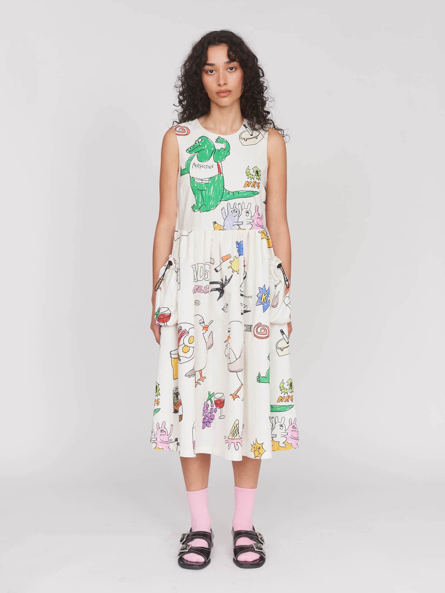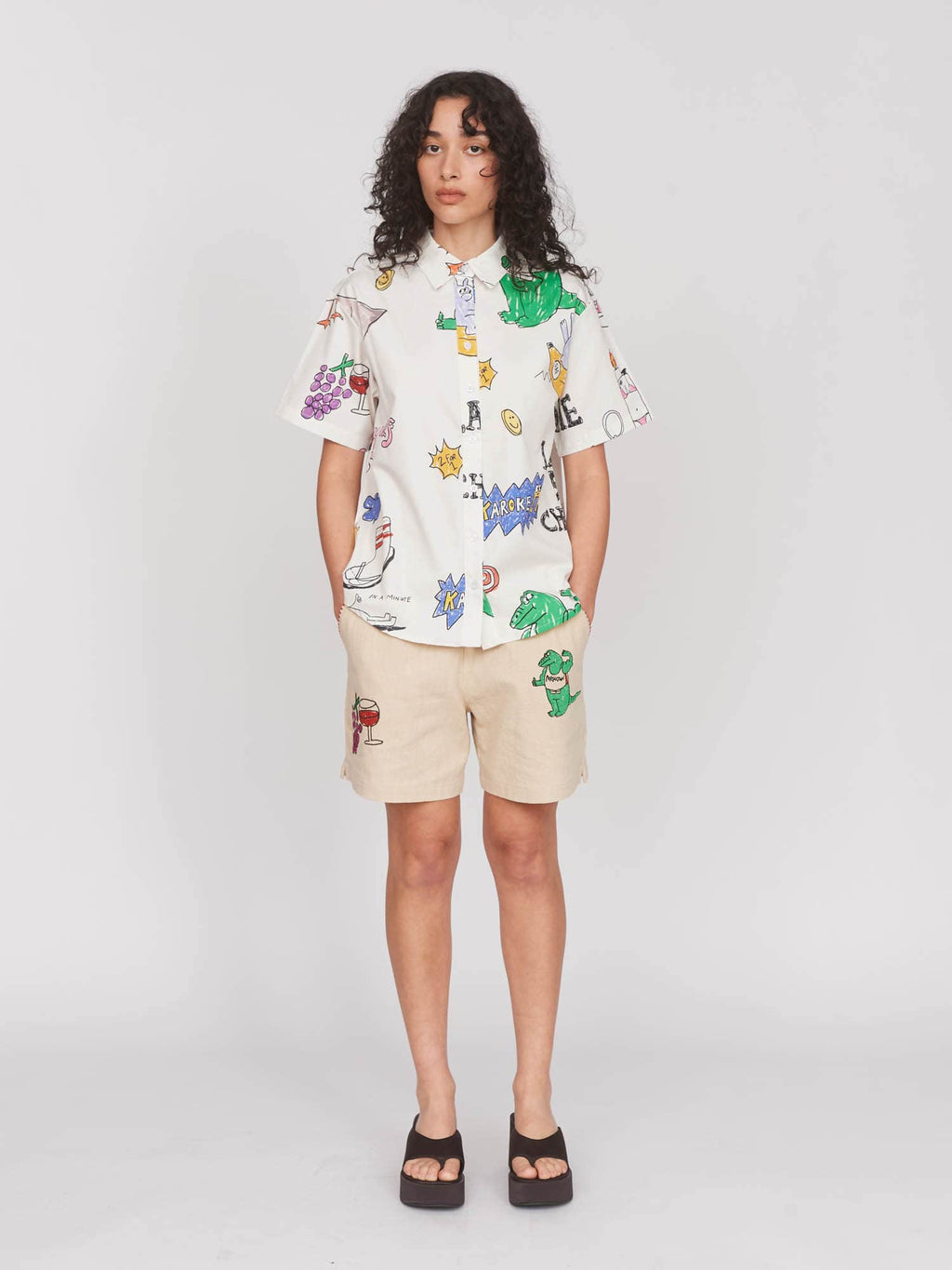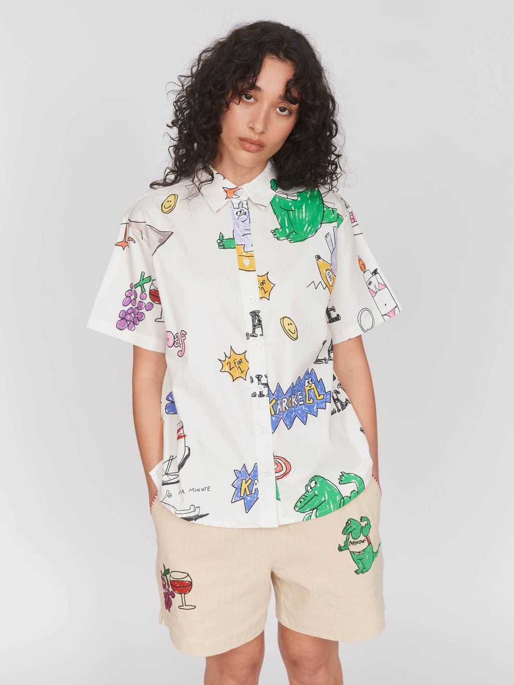 What’s a holiday without a statement shirt? Lame, that’s what. This short sleeve button up has an all over print which is unique from garment to garment, created by our in-house team. It has a back yoke and box pleat detail as well as side slits at the hem to give this relaxed shirt, it’s effortlessly good fit. Commit to the statement and layer it over our On Vacation Sleeveless Dress.