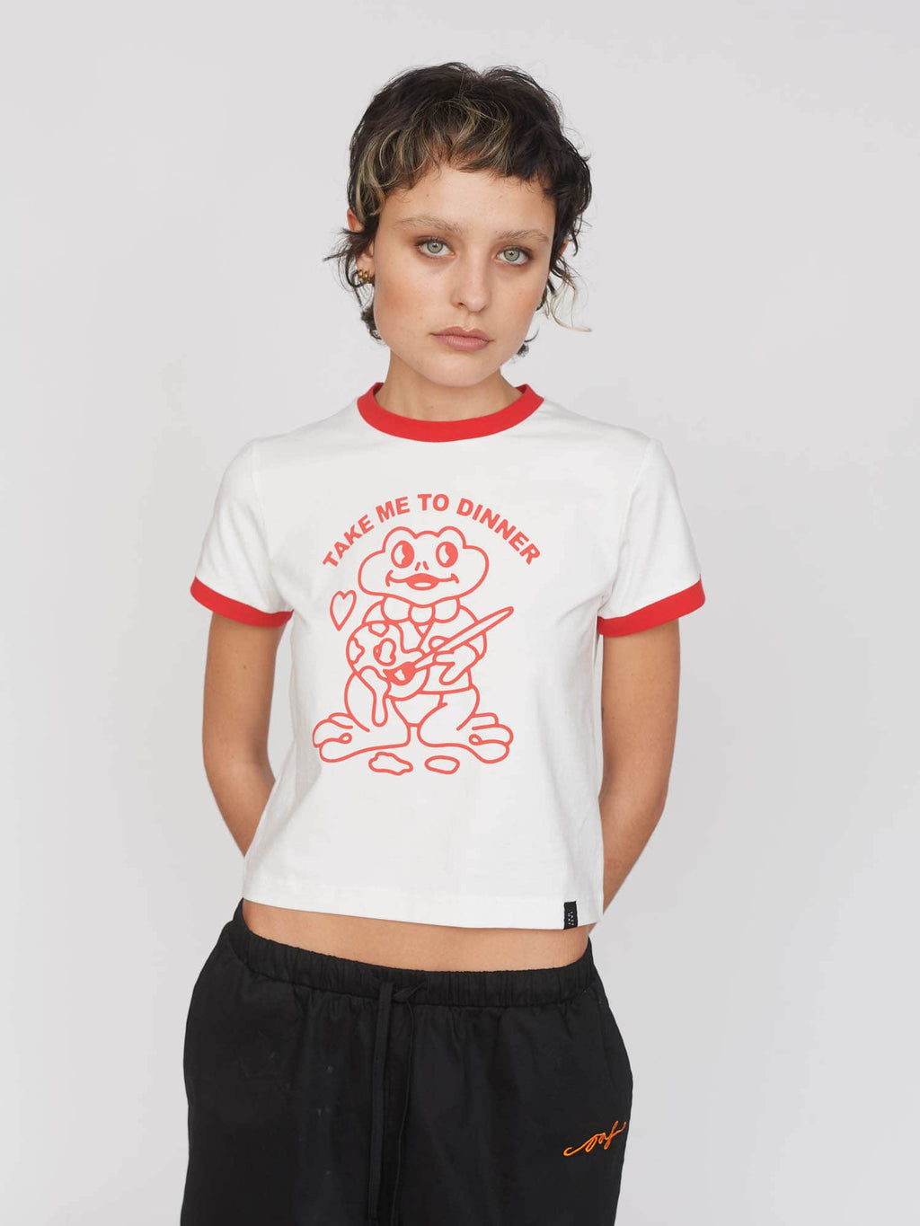 If you want to know the way to our heart, food’s a pretty grand place to start. If this resonates with you, then you need this tee. In white, it has contrast red ribbing at both the neck and sleeves along with a chest print graphic in the same red by artist Ales Div. In our bestselling fitted tee shape, it has an Oaf pip label at the hem as well a Lazy Oaf woven patch at the back of the neck.