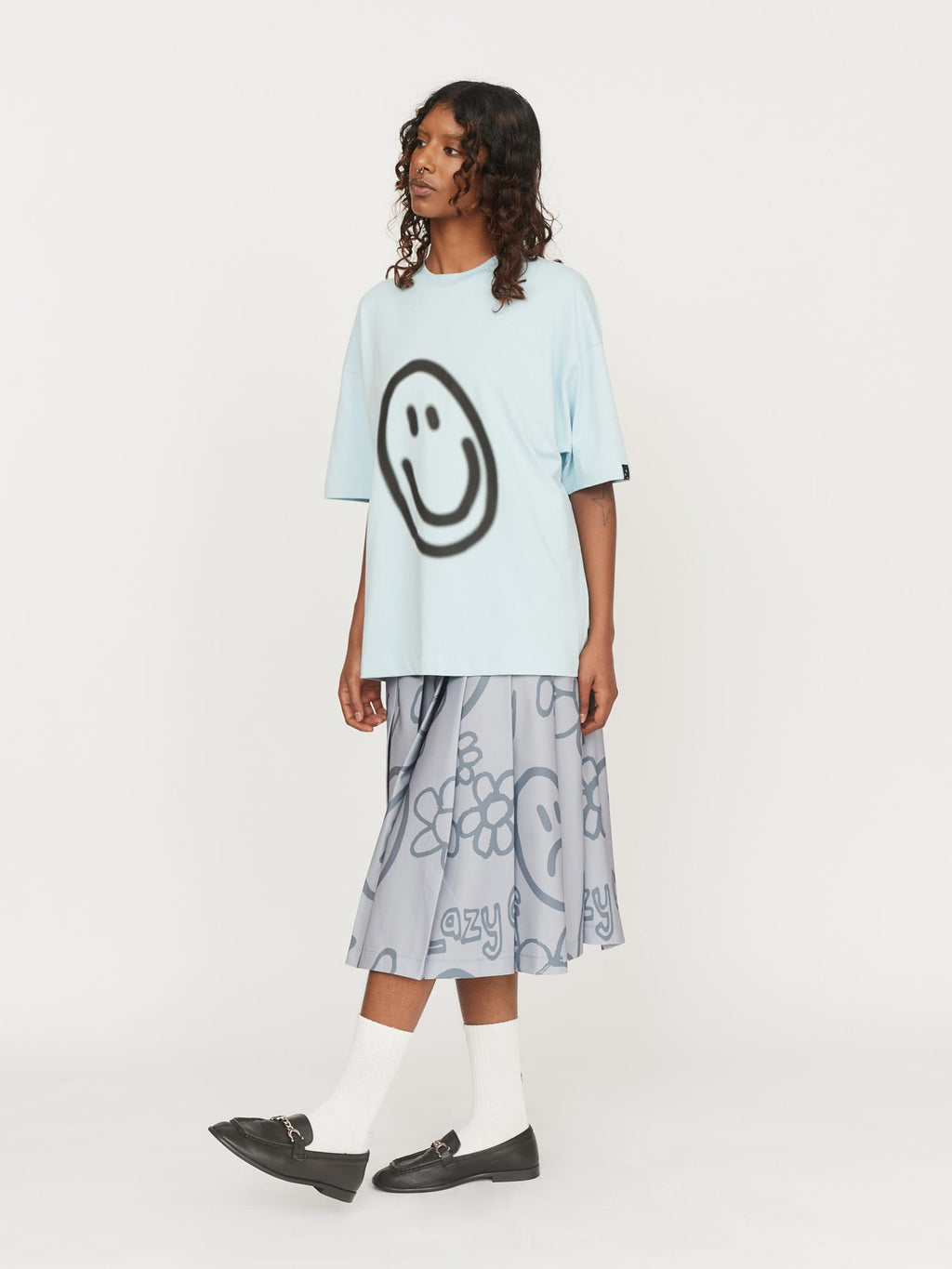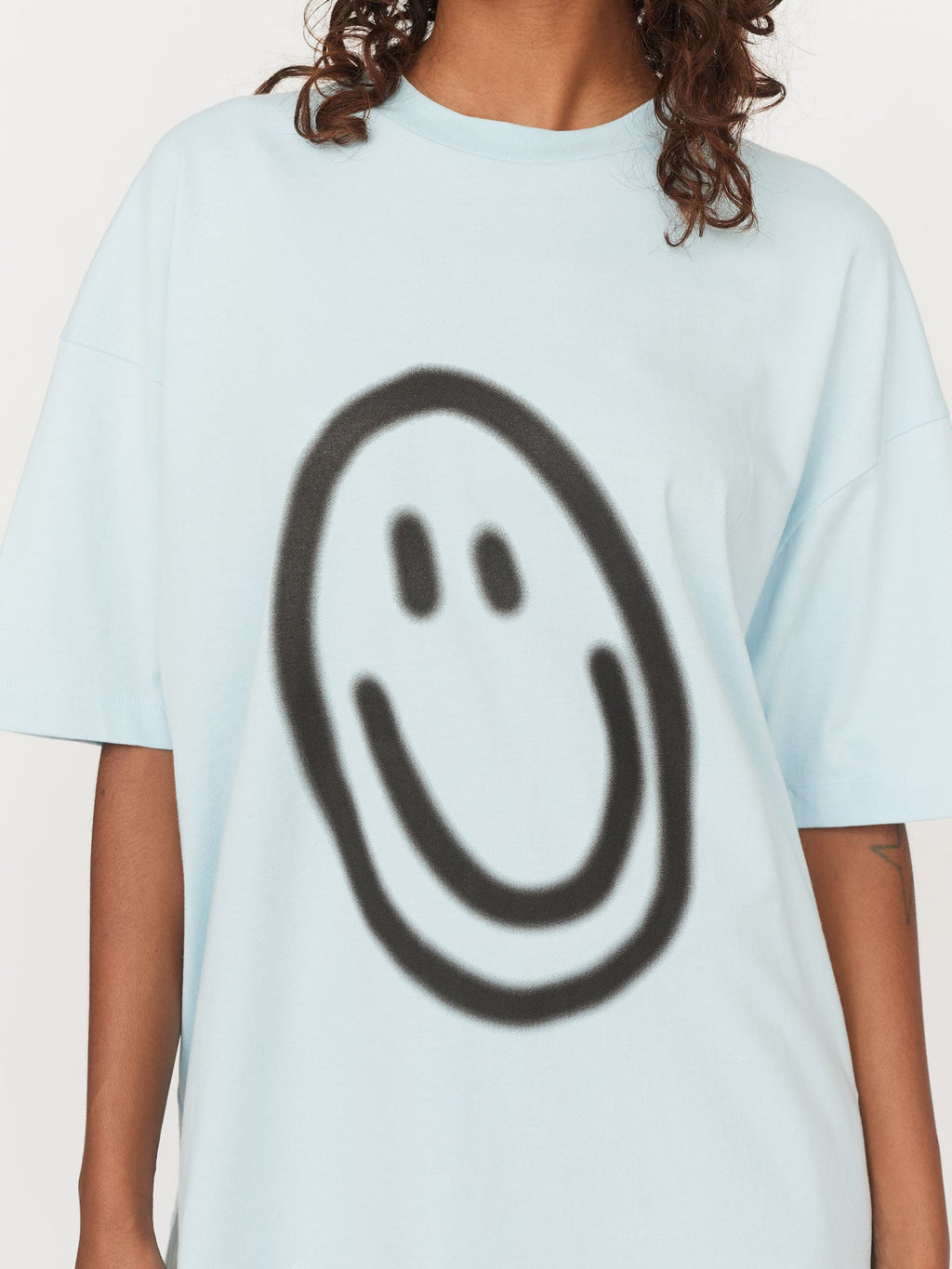 This unisex t-shirt is made from 100% organic cotton jersey, and comes in a custom blue colour. It features our signature spray smile graphic, which was printed here in the United Kingdom.Need help with your order? CONTACT US