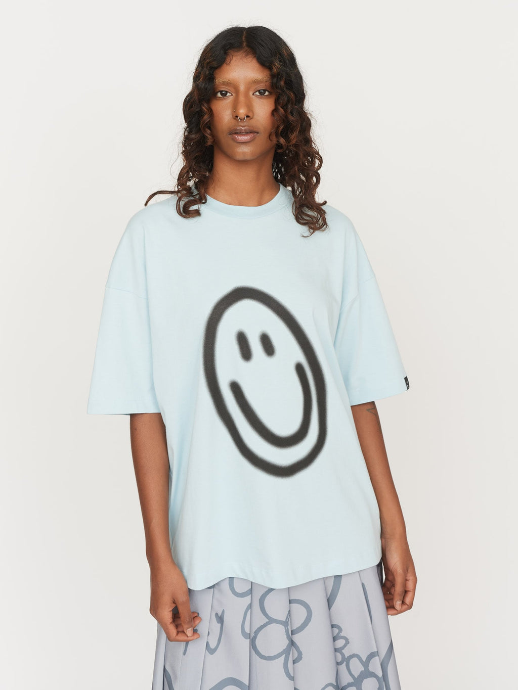 This unisex t-shirt is made from 100% organic cotton jersey, and comes in a custom blue colour. It features our signature spray smile graphic, which was printed here in the United Kingdom.